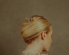 Hair pin made of polished brass featuring a center carnelian stone. Delicate Art Deco geometry meets contemporary simplicity for a timeless accent of quiet elegance